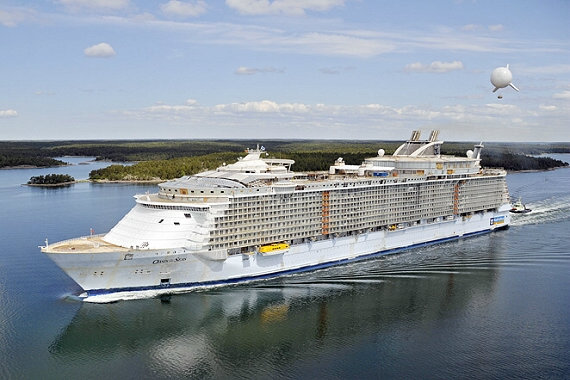 The world's largest cruise liner, the Oasis of the Seas, has set sail for Miami from the Finnish shipyard where it was built. The 360 metre ship has a price tag of almost $1.5bn and was commissi