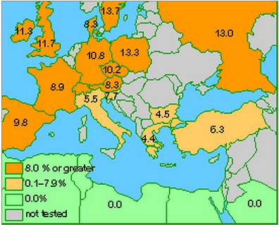 In Germany AIDS was cured for the first time. The patient – a man of 42 years old had AIDS and leukaemia. In 2007 he had a blood stem cell transplant to treat leukaemia and his donor had a gene mutation that confers natural resistance to human immunodeficiency virus (HIV). 3 years have passed and the patient has no leukaemia no HIV. Unfortunately this method can’t be suitable for all patients, because it is too risky for healthy people with the very gene and there are mot many of them. By the way it is a really breakthrough. It shows that even uncured can be cured. Here is the map of mutation spread. It is an interesting fact that 13 percent of Russian were born with this gene mutation.